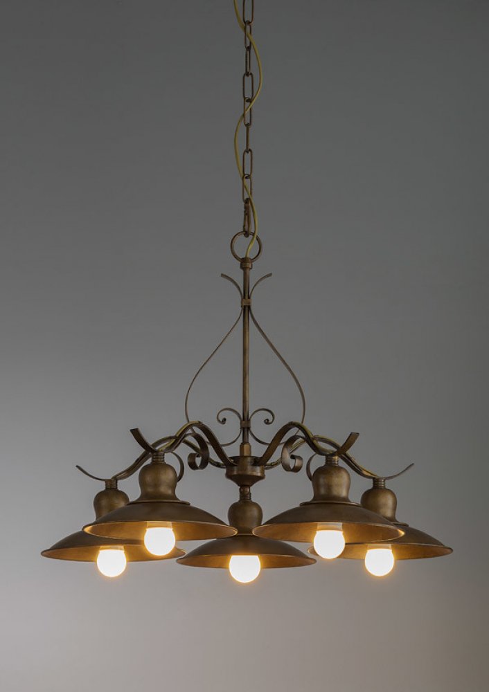 Retro lustr na pět žárovek. Konstrukce svítidla je kovová, v povrchové úpravě bronzové patiny. Stylové a do detailu propracované svítidlo, zavěšení lustru je na řetězu. Do lustru doporučujeme použít LED žárovky. Použití: retro lustr do obýváku, jídelny, pokoje, ložnice.