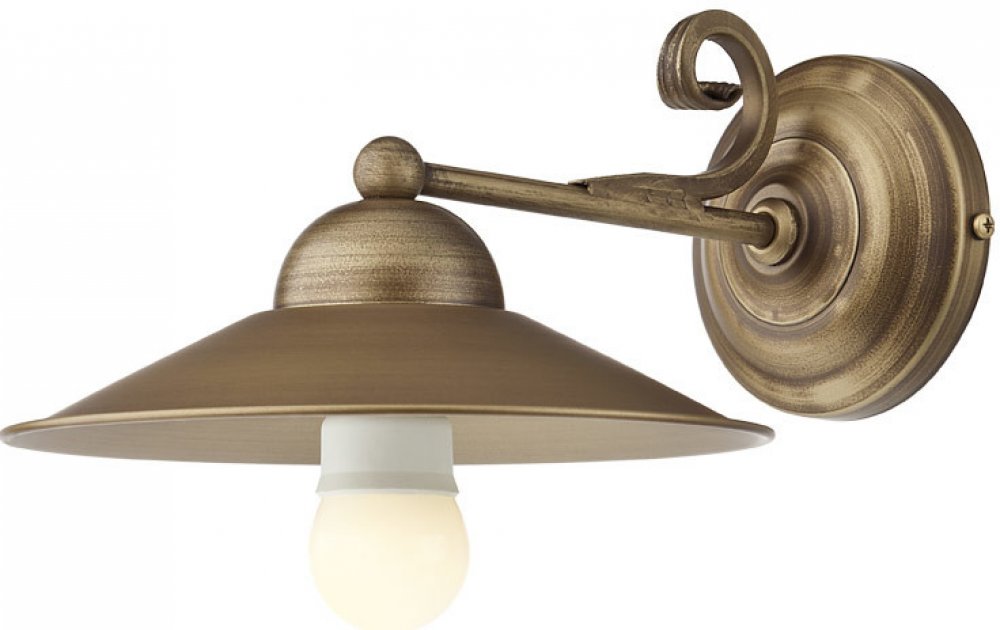 Nástěnné svítidlo z kovaného železa v hnědé barvě s mosaznou patinou.