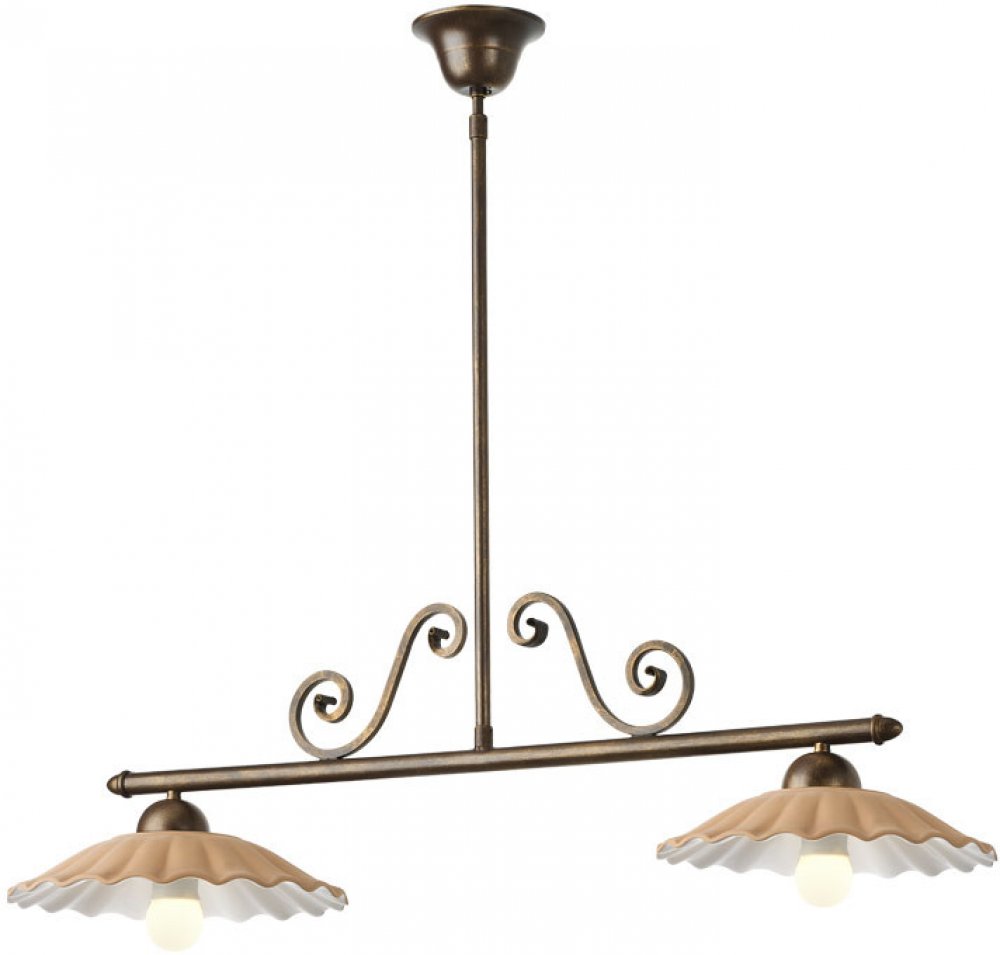Stropní svítidlo z kovaného železa v hnědé barvě se zlatou patinou.