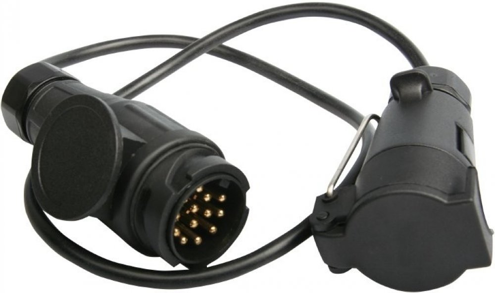 Redukce zásuvky s kabelem, která umožňuje propojení elektroinstalace vozidla s přívěsným vozidlem, pokud mají rozdílné konektory. Provedení redukce: z 13pinové zástrčky na 7pinovou zásuvkuMateriál: odolný plastDélka kabelu: 40 cmCelková délka: 65 cmProvedení výstupní zásuvky: s držákem na zavěšení na oje