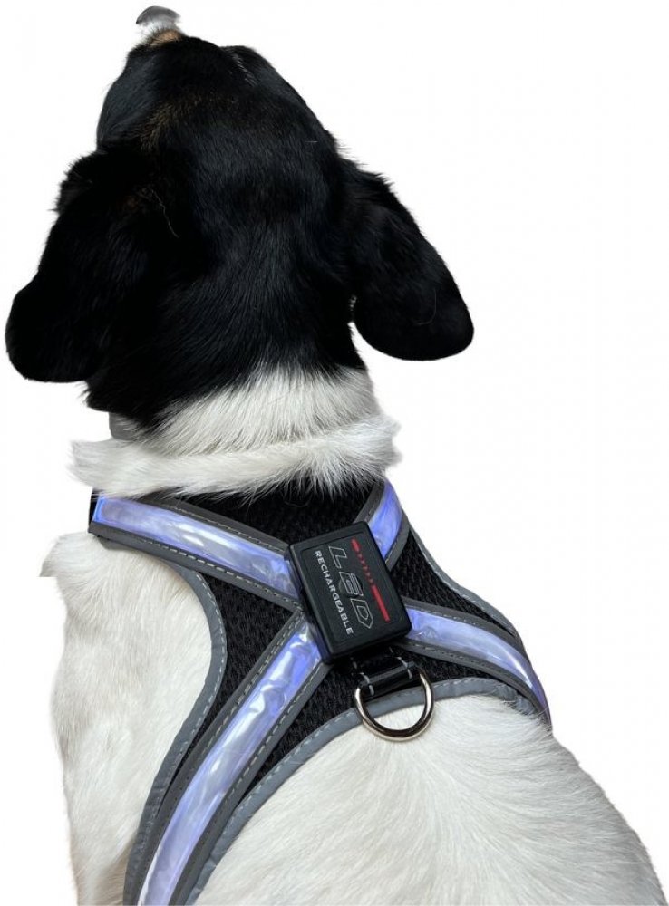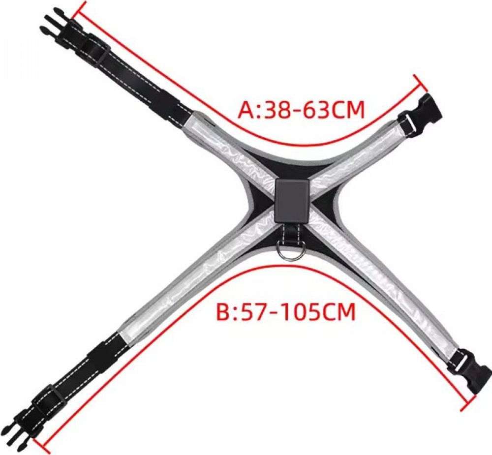 Svíticí kšíry pro velké psy, s obvodem hrudníku 57 až 105 cm a krku 38 až 63 cm dle obrázku. Vybavte vašeho pejska svítícími kšíry, aby se vám v noci už neztratil z očí. Svítící kšíry jsou skvělou volbou na procházky při snížené viditelnosti nebo v úplné tmě. Představujeme vám oblíbený bezpečnostní prvek z optického vlákna a reflexním polyesterem, který zajistí, že řidiči i ostatní kolemjdoucí vaš...