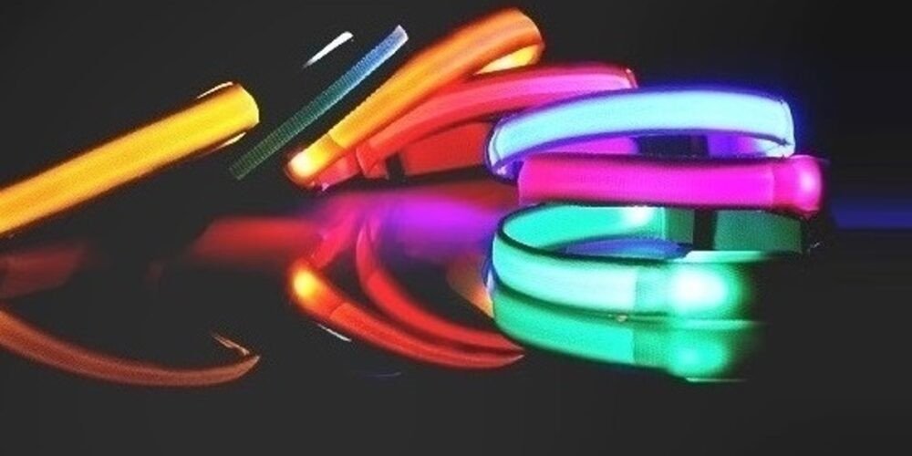 Svítící obojek má 3 druhy svícení (stálé svícení, blikání, rychlé blikání). Barvy : žlutá, oranžová, červená, růžová, modrá, zelená a bílá.