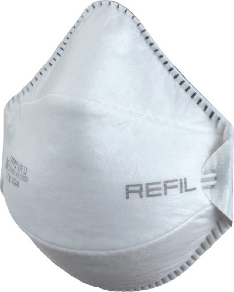 Respirátor REFIL 1030 proti pevným částicím a kapalným aerosolům. Filtrační účinnost: 12x NPK-P / PEL (do 12-násobku přípustných koncentrací škodlivin)