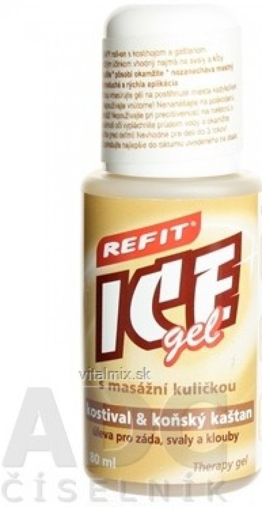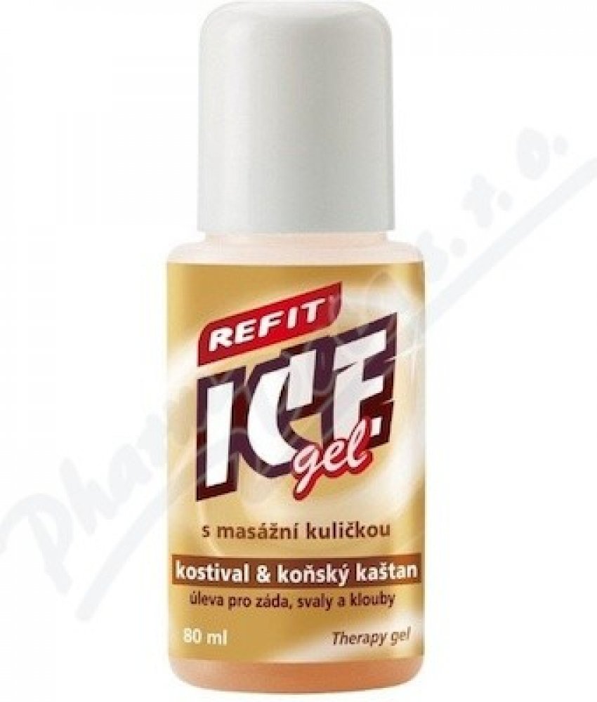 Refit Ice therapy roll - on 80 ml s kostivalem a kaštanem je extra silný gel s okamžitým účinkem, zvláště vhodný na svaly a klouby. Zmírní napětí, působí dlouhodobě. Snadná a rychlá aplikace, nezanechává mastný film. Použití: v kanceláři, v autě, při sportu. Kuličkou vmasírujte gel na bolestivá místa kdykoliv během dne. Upozornění: nepoužívejte vnitřně, nepoužívejte na poškozenou pokožku, nevhodné pro děti do 3 let. Dermatologicky testováno. Výrobce: Edwin Ozimek. Refit Ice gel roll-on kostival a kaštan 80ml