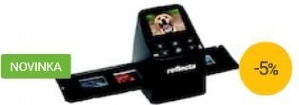 Filmový skener pro digitalizaci diapozitivů a negativů. Disponuje 2,3" displejem pro snadné ovládání a naskenované fotografie ukládá ve formátu JPEG přímo na SD kartu (není součástí balení). Nabízí manuální či automatickou korekci barev a expozice.