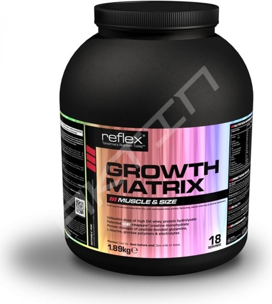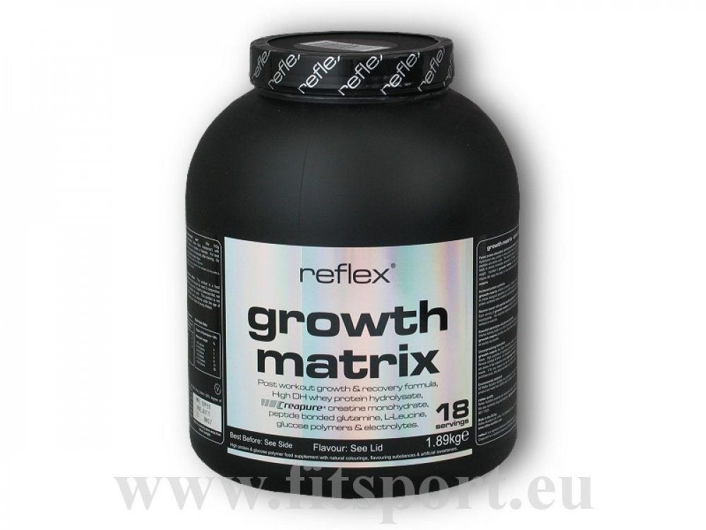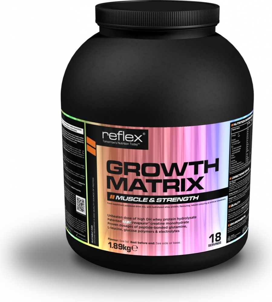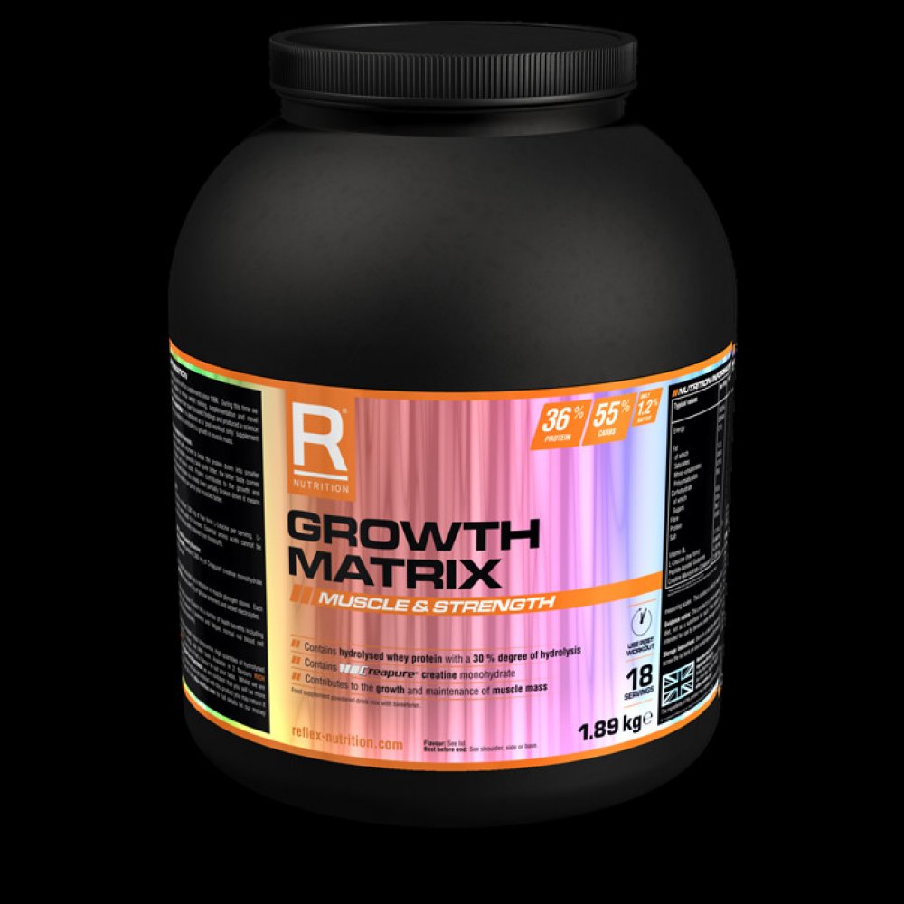 Společnost Reflex Nutrition se zabývá výrobou doplňků sportovní výživy od roku 1996. Za tu dobu jsme vytvořili důvěryhodný výzkum založený na intenzivním silovém tréninku, suplementaci a nových strategiích regenerace, které mohou stimulovat rychlý svalový růst a sílu. Náš vědecký a vývojový tým využil těchto praktických znalostí a vytvořil nofou formuli s názvem Growth Matrix. Tento jedinečný produkt je zformulován jako kompletní potréninková formule a je dávkován bezprostředně po ukončení tréninku.