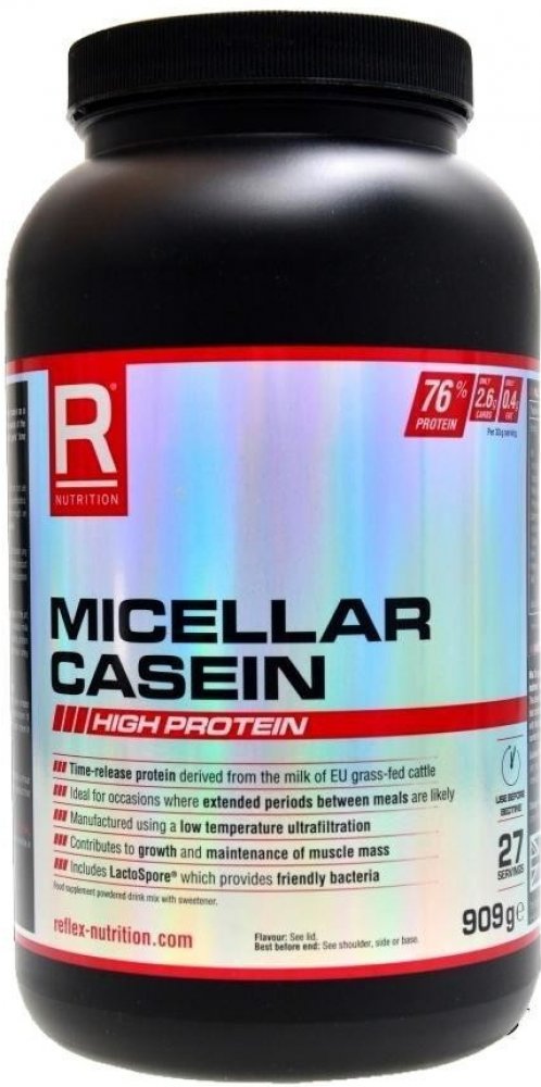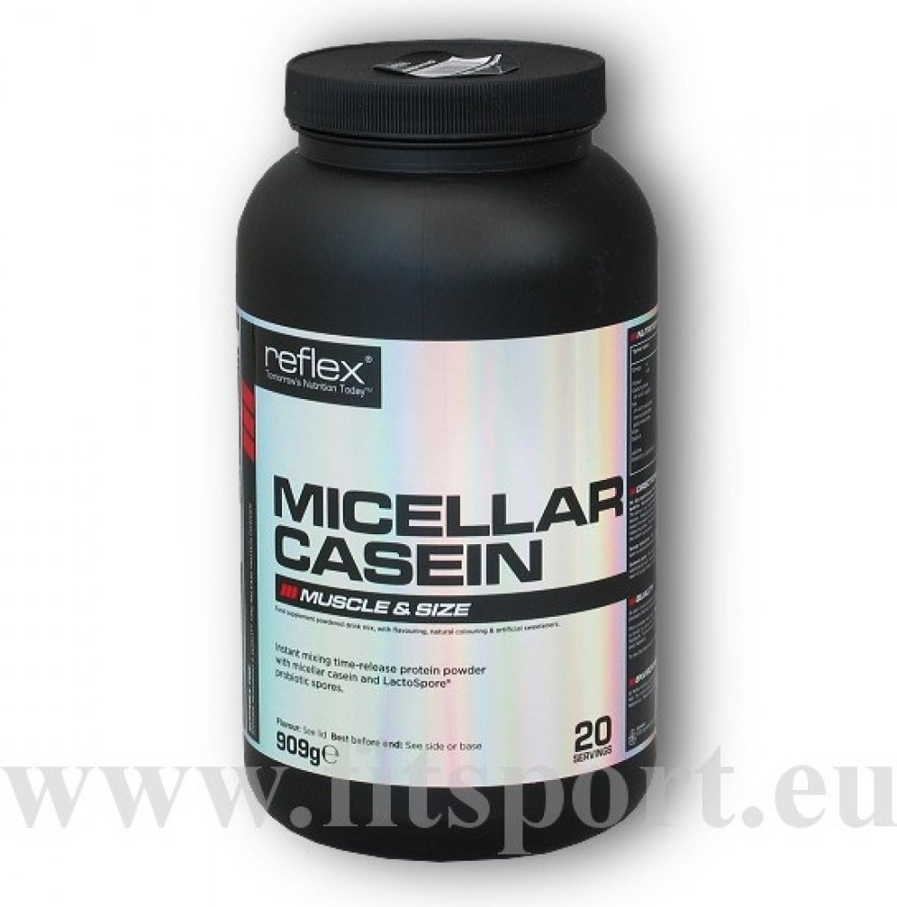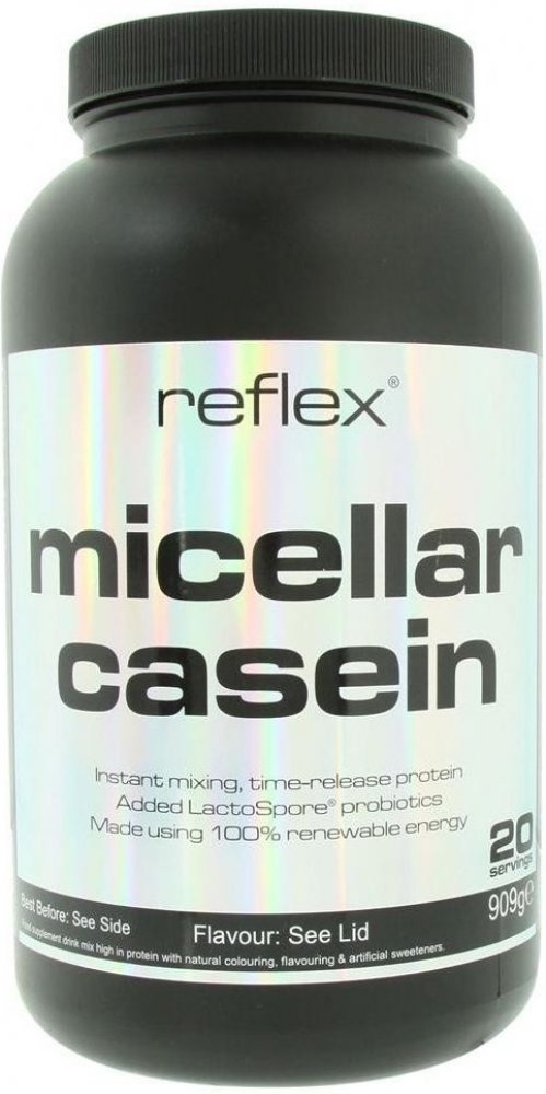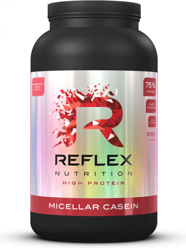 Micelární kasein nabízí kvalitní systém s postupným uvolňováním aminokyselin, a to díky formě micel, ve které je zpracován. Reflex Micellar Casein je vyroben ultrafiltrací mléčné bílkoviny – tento proces odstraňuje mléčný cukr laktózu a tuk. Výsledná surovina obsahuje okolo 85 % bílkovin!