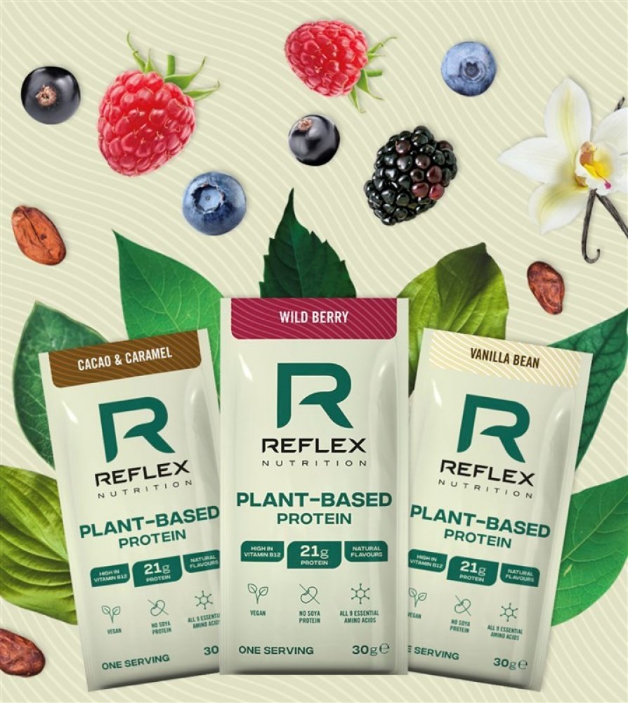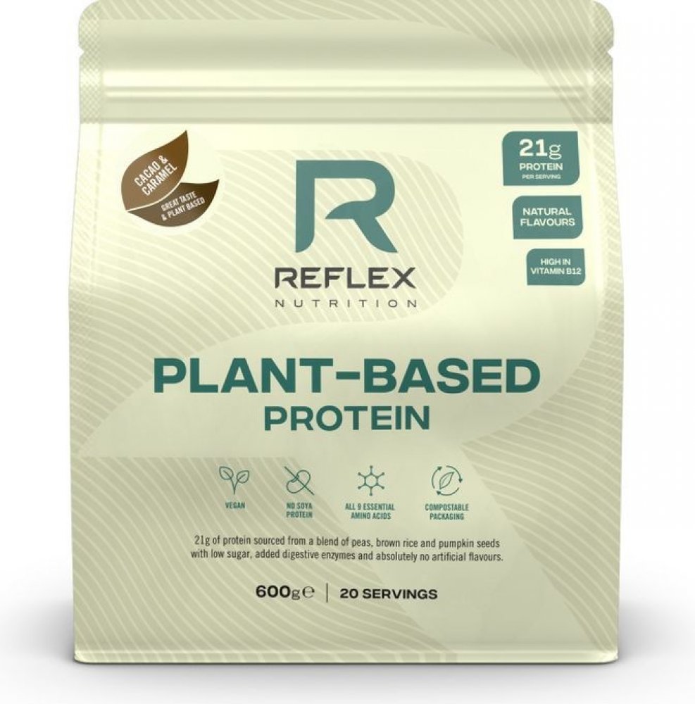 Plant Based Protein je nejnovější rostlinná formule od Reflexu a zároveň nástupce Vegan Proteinu, který byl měřítkem v oblasti chuti mezi rostlinnými proteiny. Plant Based Protein se snaží tuto laťku posunout ještě dál a nabídnout tři lahodné příchutě – cacao a caramel, vanilku a lesní ovoce připravenými tak, aby byly pohlazením pro chuťové buňky a zároveň tak perfektní odměnou po tvrdém tréninku, nebo výživově čistým zákuskem kdykoli během dne při práci nebo doma. Plant Based Protein je rovněž dostupný v 600g balení i v jednorázových sáčcích. Je slazený sukralózou.
