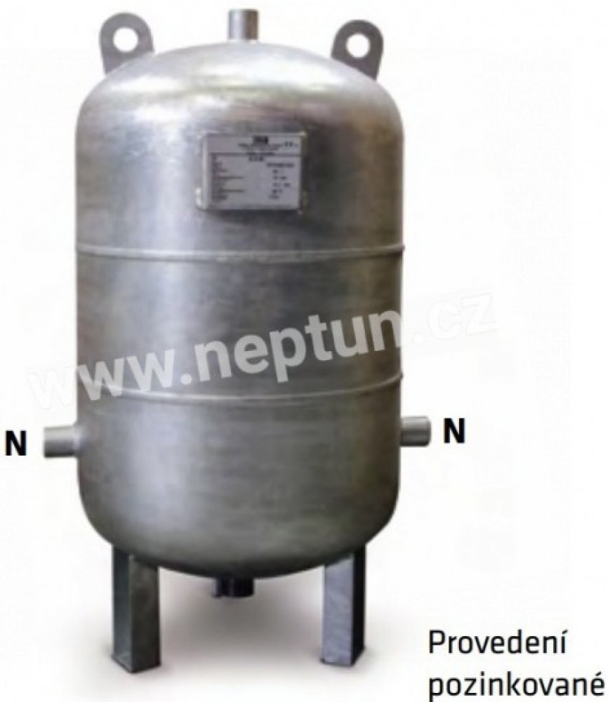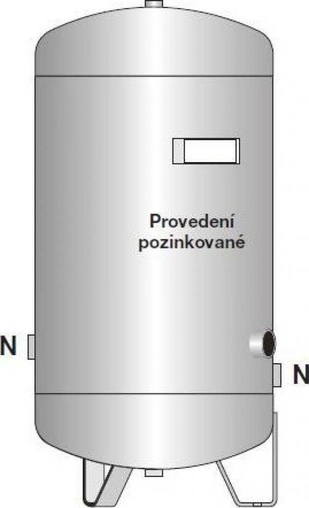 svařená ocelová tlaková nádoba stojatá, návarky s vnitřním závitem oboustranně žárově zinkována
