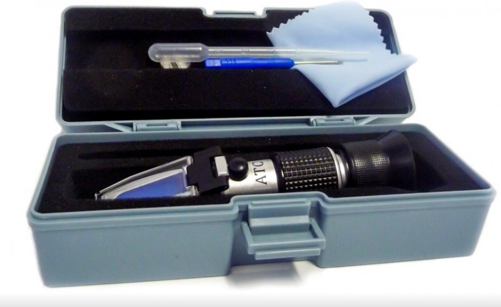 Refraktometrem měříme průměrné množství cukru v kvasu. Refraktometr i kvas, který se bude měřit, by měl mít teplotu přibližně 20°C. Při používání přístroje jej držte v horizontální poloze. Zvedněte průhledné víčko a umístěte na modrý povrch hranolu tak, aby byl celý pokrytý kvasem. Nezapomeňte promíchat nádobu s kvasem předtím, než odeberete vzorek, aby hodnota nebyla chybná. Při aplikaci kvasu nepoužívejte ostré předměty, můžete tak poškodit nebo poškrábat hranol. Ihned sklopte víčko a nyní můžete změřit hodnotu, tam kde přímka protíná stupnici mezi tmavou a světlou částí v zorném poli. Na stupnici přečtete obsah cukru v kvasu. Po změření hodnoty ihned očistěte hranol a víčko hranolu vlažnou vodou.