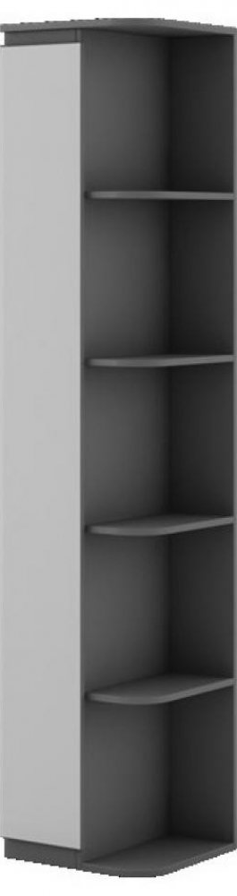 Rohový regál s úložným prostorem Play 02 je součástí dětského sektorového nábytku Play. Regál disponuje 5 otevřenými policemi a 5 policemi za dvířky. Regál můžete přistavit k rohové skříni Play 00l, 00p, 01, zvýšíte tak počet úložných ploch.