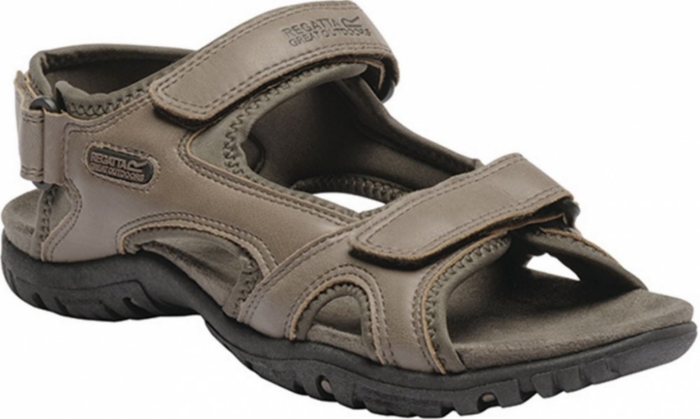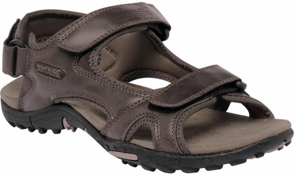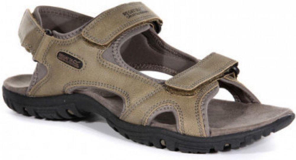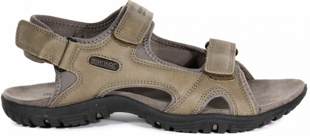 Pánské sandály Regatta Haris s volnou patou z pevného materiálu. Sandály jsou zemitých barev a hodí se tak ke každému oblečení. Pánské sandály s volnou patou. Pásky jsou z rubové strany podloženy materiálem Spandex pro větší pohodlí, svršek z umělé kůže, navíc jsou nastavitelné pomocí suchých zipů, dva jsou přes nárt a další přes patu, díky tomu bota výborně sedí. Zadní pásek disponuje polstrování...