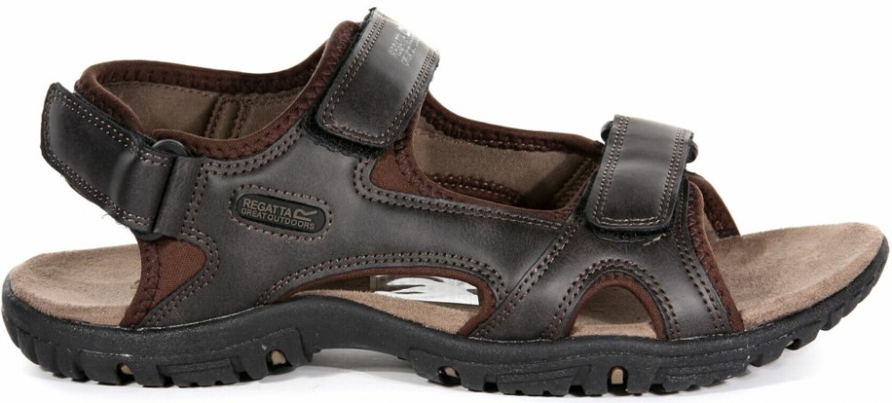 Pánské sandály Regatta Haris s volnou patou z pevného materiálu. Sandály jsou zemitých barev a hodí se tak ke každému oblečení. Pánské sandály s volnou patou. Pásky jsou z rubové strany podloženy materiálem Spandex pro větší pohodlí, svršek z umělé kůže, navíc jsou nastavitelné pomocí suchých zipů, dva jsou přes nárt a další přes patu, díky tomu bota výborně sedí. Zadní pásek disponuje polstrování...