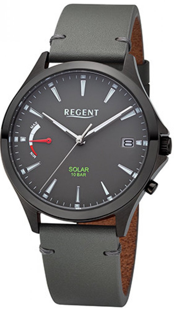 Značka: Regent Cílová skupina: Muži Čísla číselníku: Index Barva pouzdra: antracitová Sklo: minerální sklo Materiál řemínku: kůže Materiál pouzdra: nerezová ocel Barva ciferníku: antracitová Rozměry: 41 mm Displej: Velikost: 2,5 mm Funkce: analogové Zobrazení data Typ mechanismu: solární Typ zapínání: Spona Vodotěsnost: 10 ATM Popis produktu: Módní hodinky značky Regent mají šedý kožený řemínek s ...