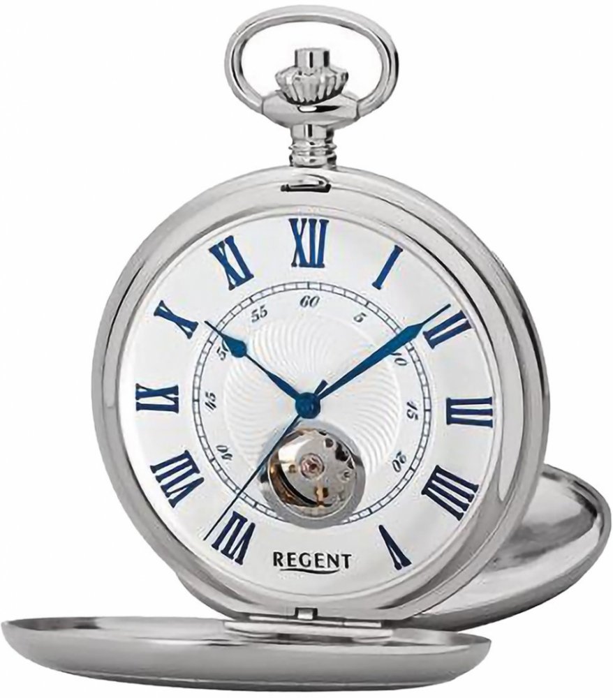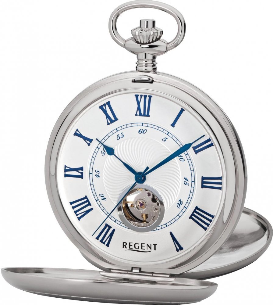 Regent analogové kapesní pánské mechanické 53 mm bezniklová slitina 250.0 g akrylátové bez osazení P707 kulaté stříbrná s římskými číslicemi velké s pravidelnou údržbou (mechanické)