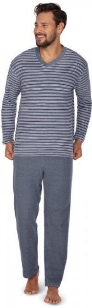 Regina 450 pánské pyžamo dlouhé froté tm.modré