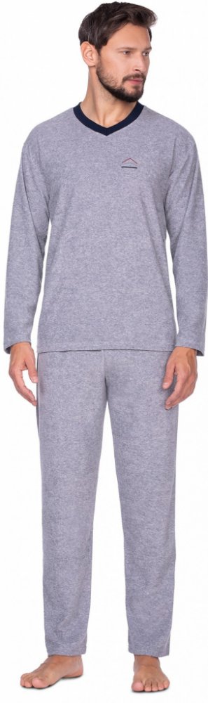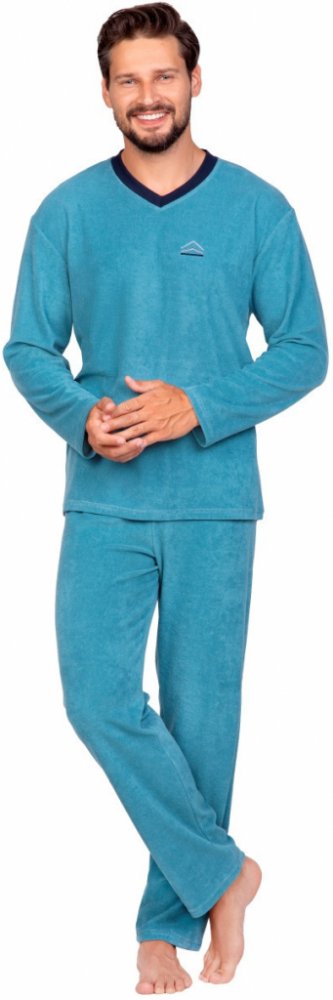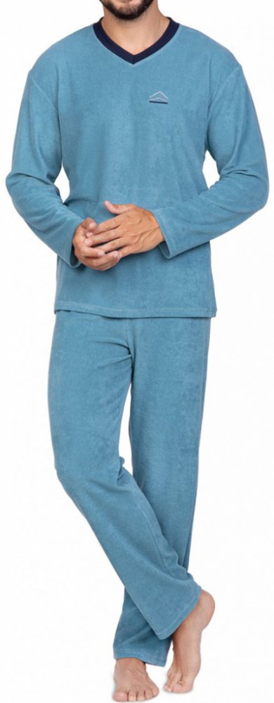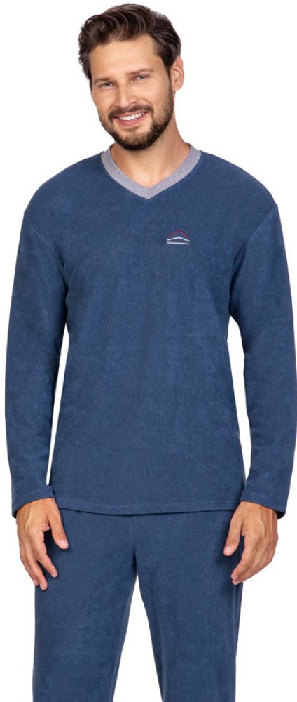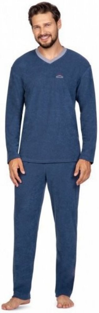 Regina 592 pánské pyžamo dlouhé froté modré