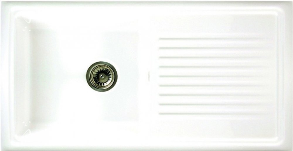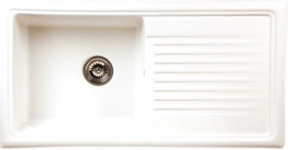 - zářivě bílý keramický dřez ve vysokém lesku s odkapávačem