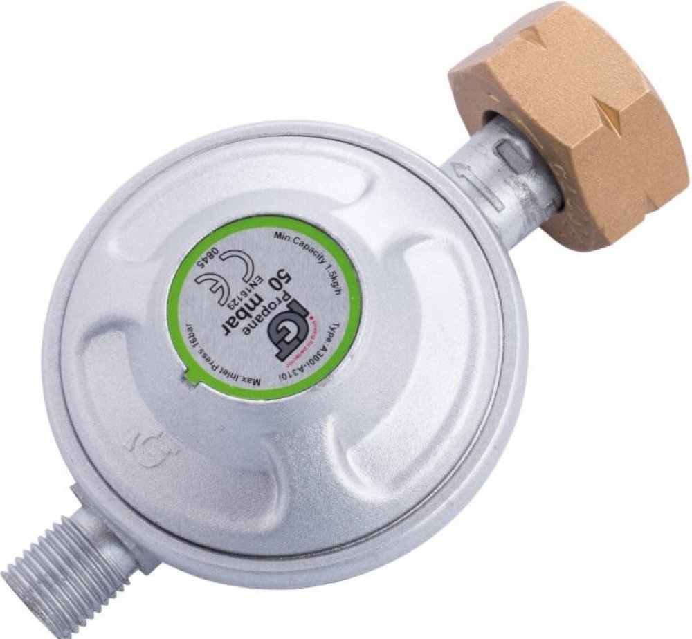 Regulátor tlaku 30mBar, závit G 1/4 LNízkotlaký LPG regulátor samočinně snižuje tlak plynu a udržuje jej v nastavené výši. Je navržen pro používání v zakrytém prostoru, aby nedošlo k ucpání vzduchového otvoru. Na vstupu je pro připojení ventilu opatřen převlečnou maticí W 21,8 x 1/14“ L a na výstupu závitem G “L. Pd - 30 mBar, On - 1,5 kg/h. Montáž regulátoru mohou provádět pouze osoby starší 18-ti let, znalé bezpečnostních předpisů. Určený k regulaci tlaku u nízkotlakých vařičů (grily, vařiče). Není vhodný pro PB hořáky.