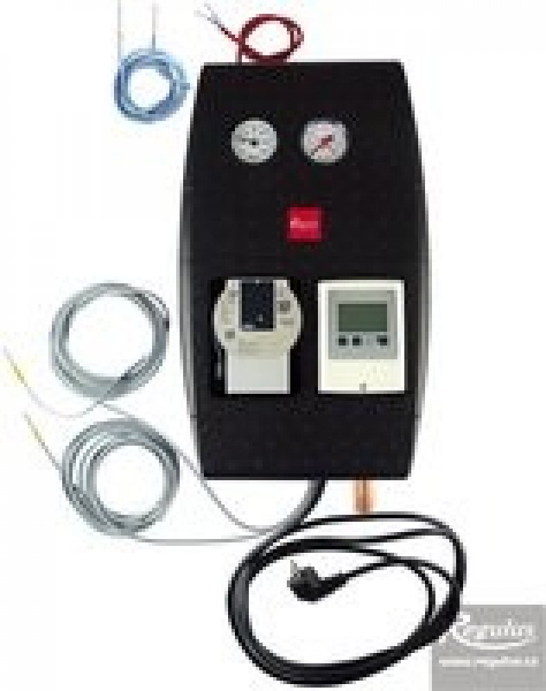 Jednotrubková čerpadlová skupina s integrovaným regulátorem SRS1 T pro 1 solární spotřebič a třemi čidly v ceně, s čerpadlem Wilo PARA ST 25/7 iPWM2, se zásuvkou s výstupním napětím 230 V pro připojení topného tělesa o výkonu až 3 kW, spínanou regulací. Elektronické měření průtoku 2-20 l/min. Napájecí kabel do zásuvky 230 V. Čerpadlová skupina s integrovaným regulátorem pro řízení solárního systém...