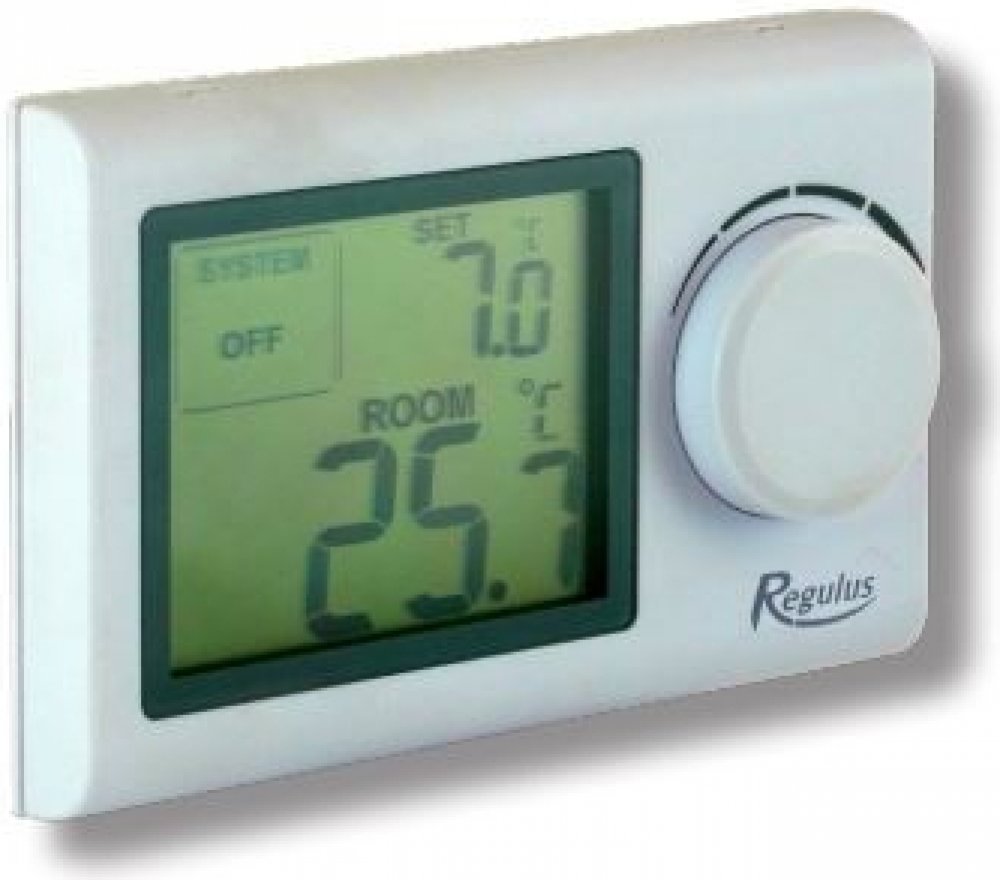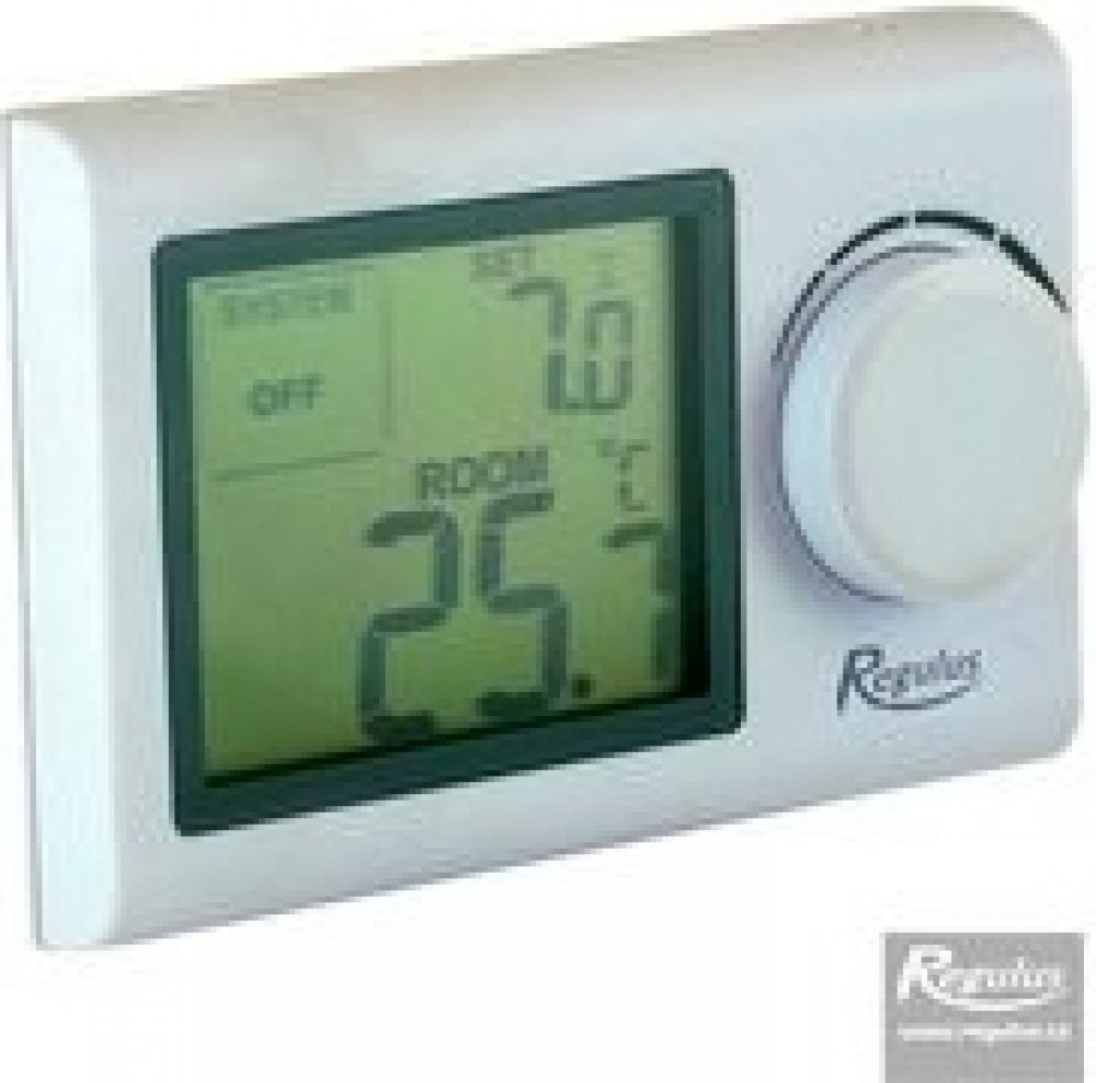 Jednoduchý elektronický pokojový termostat s LCD displejem pro topení i chlazení, který zobrazuje teplotu v místnosti, nastavenou teplotu a aktuální stav termostatu (topení/chlazení/protimrazová ochrana). Bateriový 2×AAA (součást balení), nastavitelná teplota 5-35;C kolečkem, kontakt 6(2) A/230 V Náš skladový kód: 17168