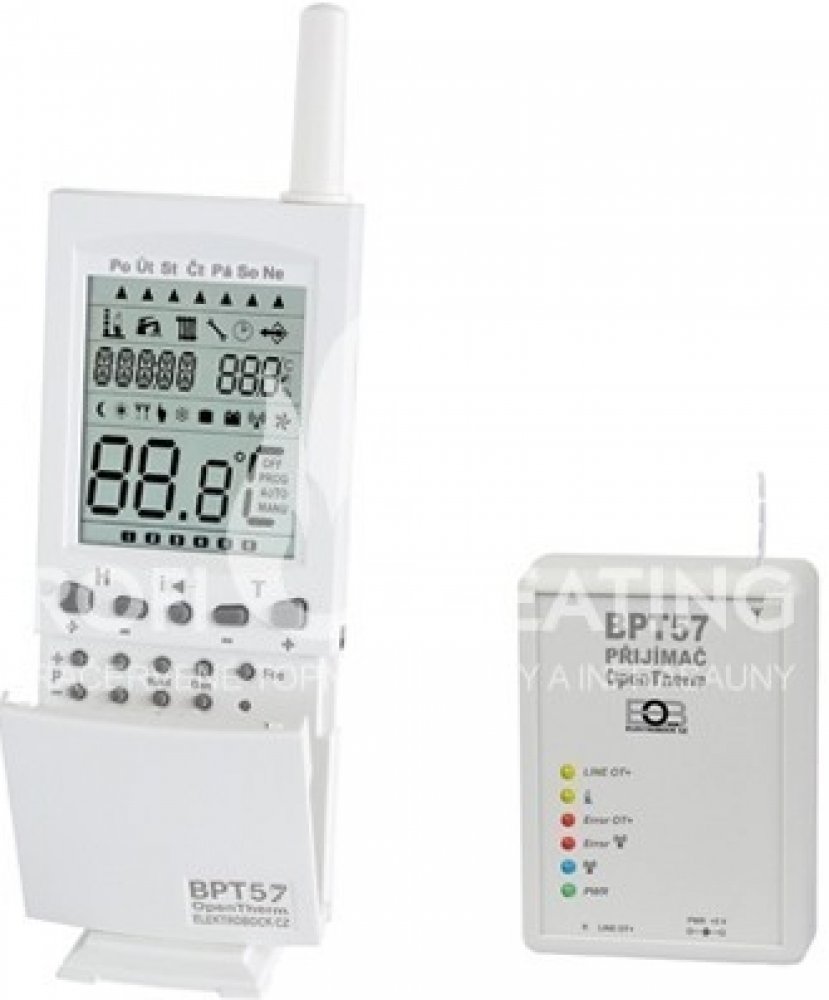 Termostat zapíná a vypíná topné zařízení podle požadované a aktuální teploty v místnosti (vytápění na zvolenou teplotu v rozsahu 5 až 35 °C).