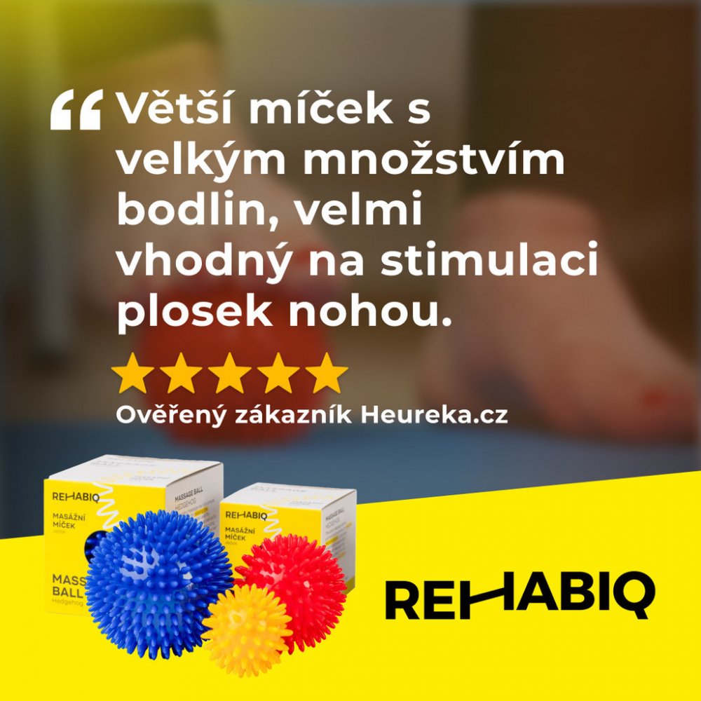 Masážní míček ježek Rehabiq je jednoduchá pomůcka, která je vhodná k uvolnění celého těla. Najde využití při rehabilitačních cvičeních - například po úrazu ruky a prstů. Skvěle se hodí také na domácí automasáž po náročném pracovním dni. Jistě ho ocení také sportovci, kterým pomůže regenerovat svaly a fascie po sportovním výkonu. Kompaktní velikost umožňuje vzít masážní míček kamkoliv. Masážní ježe...