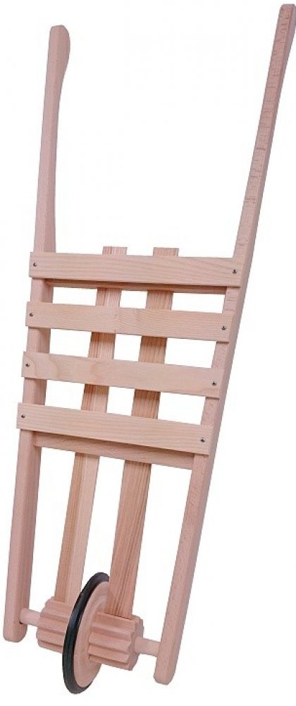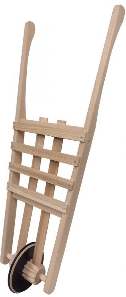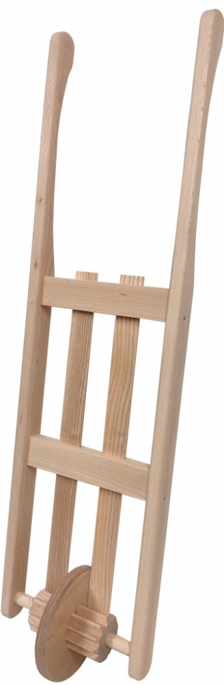 Trakař je vyrobený z kvalitního bukového dřeva je opatřen pogumovaným kolečka, které zajišťuje větší komfort při jízdě. Tento typ je navíc doplněn o dřevěné příčky, které mu dodávají luxusní vzhled. Tělo trakaře je do tvaru "V" což zajišťuje větší pohodlnost při chůzi než u jiných typů.