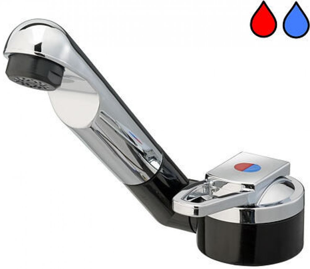 Vodovodní kohoutek Reich KeramikVodovodní baterie Reich Keramik je vybavena keramickým těsněním a odnímatelným perlátorem a také sklopným ramenem.Baterie Keramik De Luxe v luxusním chromovaně černém provedení s mikrospínačem umožňuje přívod teplé a studené vody.Vertikálně otočný výtok je chráněn před mrazem. Po sejmutí výtokové trubky můžete baterii připevnit 1/2" závitovými přípojkami.Klíčové vlastnosti vodovodní baterie Reich Keramik De Luxe, chrom-černá:Je vybavena keramickým těsněním s odnímatelným perlátorem a sklopným ramenem.Baterie De Luxe je vyrobena v luxusně chromo-černém provedení.Umožňuje provoz teplé i studené vody.Otočný výtok je chráněn před mrazem.Parametry vodovodní baterie Reich Keramik De Luxe, chrom-černá:barva: chrom, černámontážní otvor: 27 mmmaximální tlak: 3 barmateriál: plastcelkoví výška: 40 mmdélka kabelu: 300 mmrozměry balení: 355 × 121 × 54 mmváha: 155 gtyp připojení: Reich AUpozornění:Nejste si jisti výběrem vhodného připojení Vaší kuchyňské či koupelnové baterie v karavanu? Podívejte se na náš přehled typů připojení baterií v karavanech a obytných vozech.
