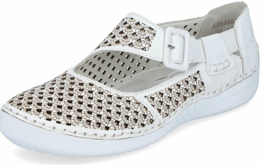 Tato polobotka s páskem od značky Rieker je trefa do černého. Kožený svršek v bílé barvě je perforovaný po celém povrchu. Pásek zdobí elegantní přezka. Díky pružnému prvku na pásku stačí balerínku jednoduše nazout a můžete vyrazit. S měkkou stélkou se budete cítit komfortně i při každodenním nošení. Ať už se vydáte za prací či zábavou, budete vypadat famózně.