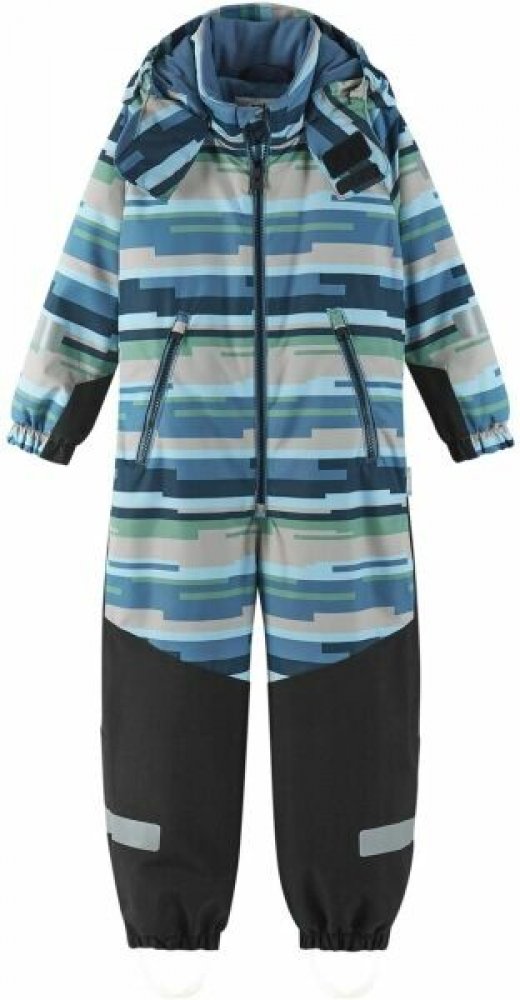 Dětská zimní kombinéza Reima KURIKKA s výrazným potiskem má tradiční sportovní vzhled. Je ušita z prodyšného, plně vodě a větru odolného materiálu s povrchem odpuzujícím špínu. V zadní části kombinézy a na nohavicích od kolen dolů je použit materiál s vyšší pevností a odolností.