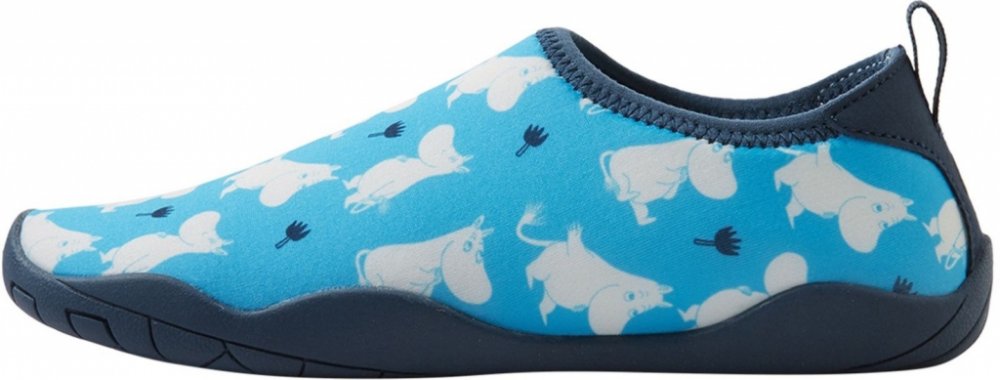 Dětské boty do vody Reima Moomin Lean ideální na pláž z rychleschnoucího materiálu chránícího před sluncem. Podešev je vyrobena z pryžového materiálu, který chrání malé nožky před ostrými předměty na pláži a ve vodě. Tyto pantofle, které lze prát v pračce a snadno se nazouvají, lze nosit i uvnitř.