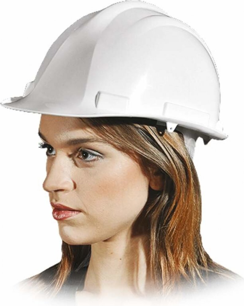chrání hlavu před padajícími předměty při práci, např. na staveništi nebo v továrně