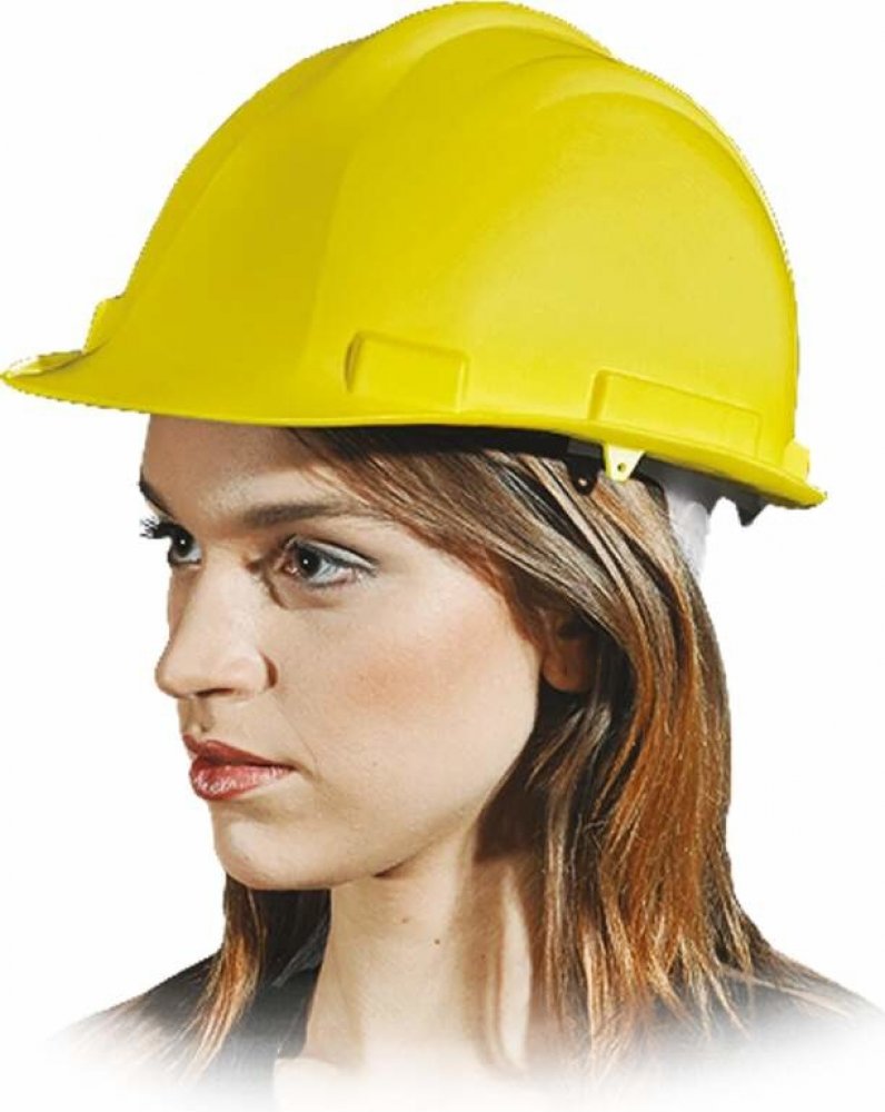 chrání hlavu před padajícími předměty při práci, např. na staveništi nebo v továrně