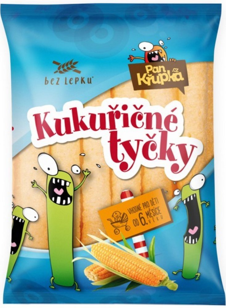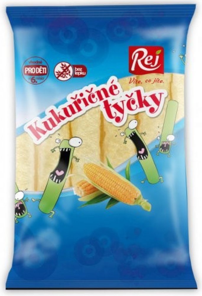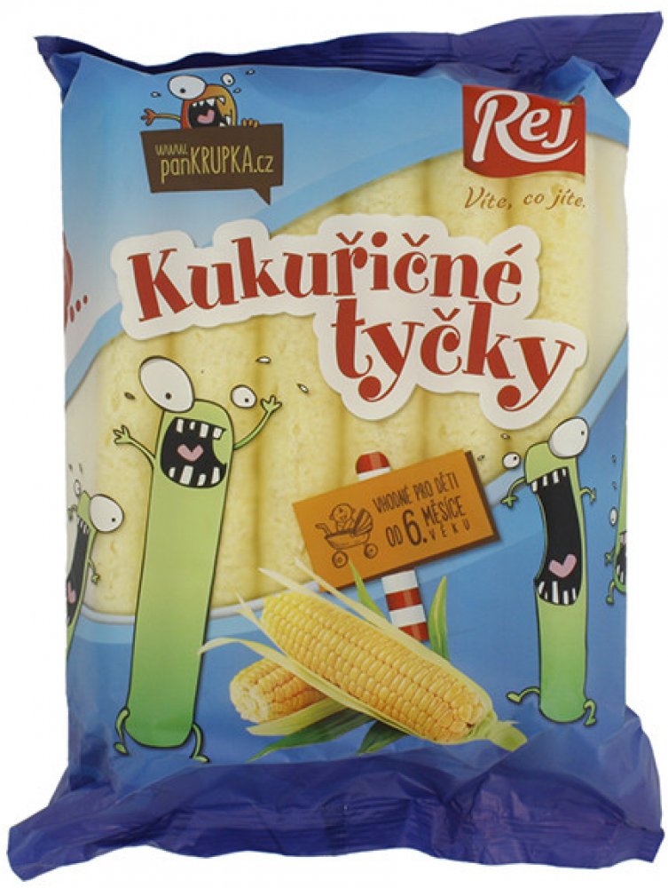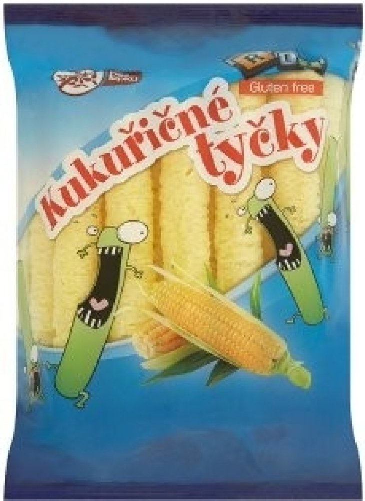 Extrudovaná kukuřice ve tvaru silných dlouhých tyček - skvělá svačinka pro nejmenší děti, zdravější alternativa snacků pro dospělé a alternativní příloha pro celiaky.