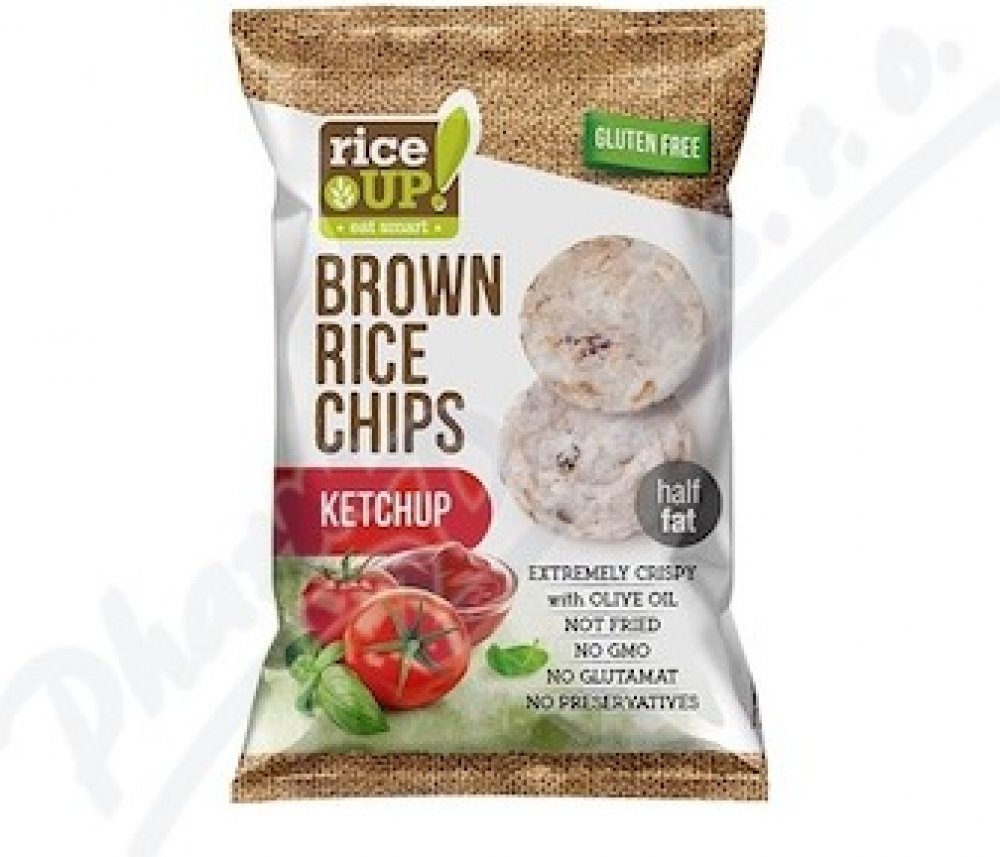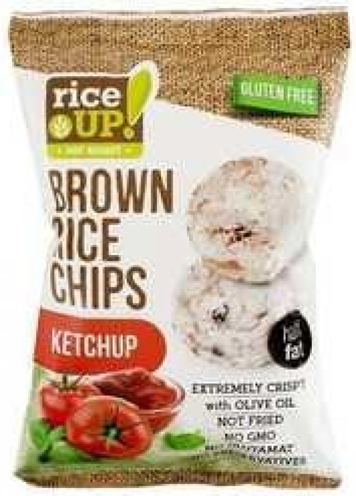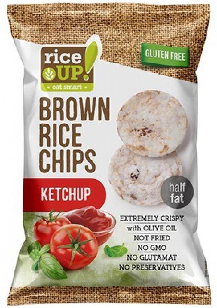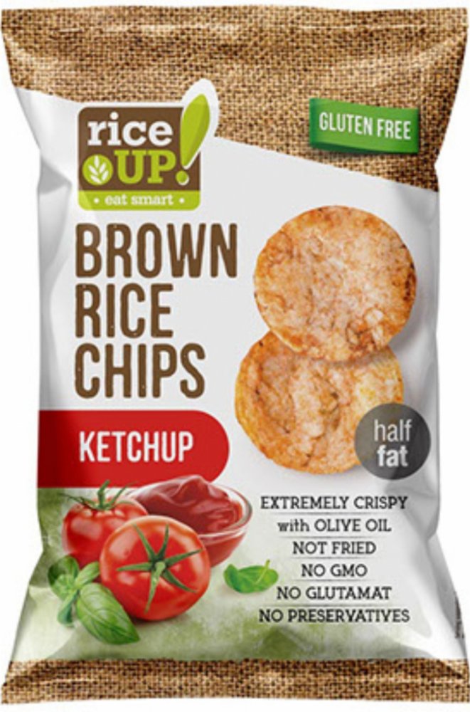Celozrnné rýžové chipsy s příchutí kečupu. Vhodné pro alergiky – bez lepku,