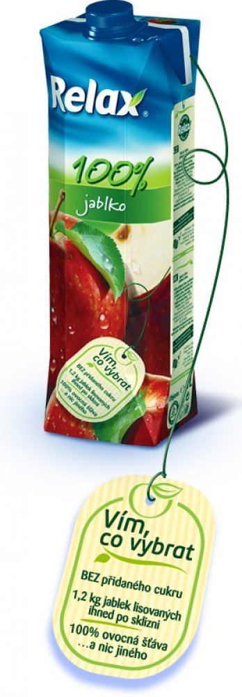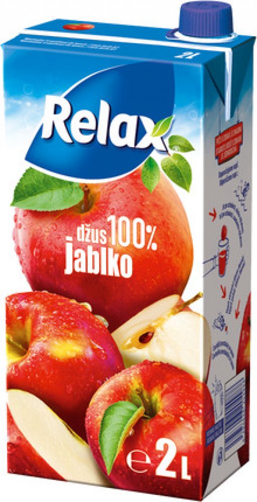 100%ní jablečná šťáva vyrobená z koncentrátu. Relax 100% jablko je další, velmi oblíbenou příchutí, která je nyní rovněž k dostání v novém, praktickém balení PET 300ml. Džus vyrobený z několika odrůd jablek, zpracovaných ihned po sklizni. Proto má 100% jablečný džus Relax tak přirozenou barvu, příjemnou vůni a skvěle chutná! Příprava a použití: Po otevření uchovávejte v chladničce a spotřebujte do 48 hodin. Skladování: Chraňte před přímým slunečním světlem.