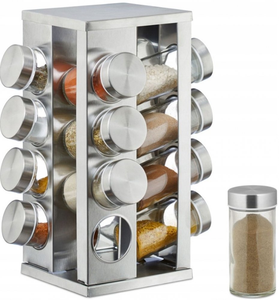 Stojan na koření Relaxdays 16 sklenic chromVÝROBEK JE ZABALEN V ORGINÁLNÍM ŠEDÉM KARTONU! BALENÍ MÁ STOPY SKLADOVÁNÍ NEBO POŠKOZENÍ!Organizér se sadou kořenek