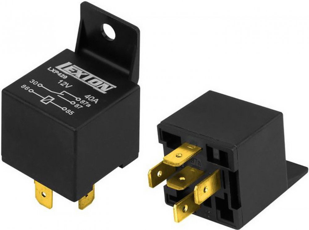 Spolehlivé automobilové relé s napájecím napětím 12 V. Vybaveno dvěma NC (30A) a NO (40A) kontakty.