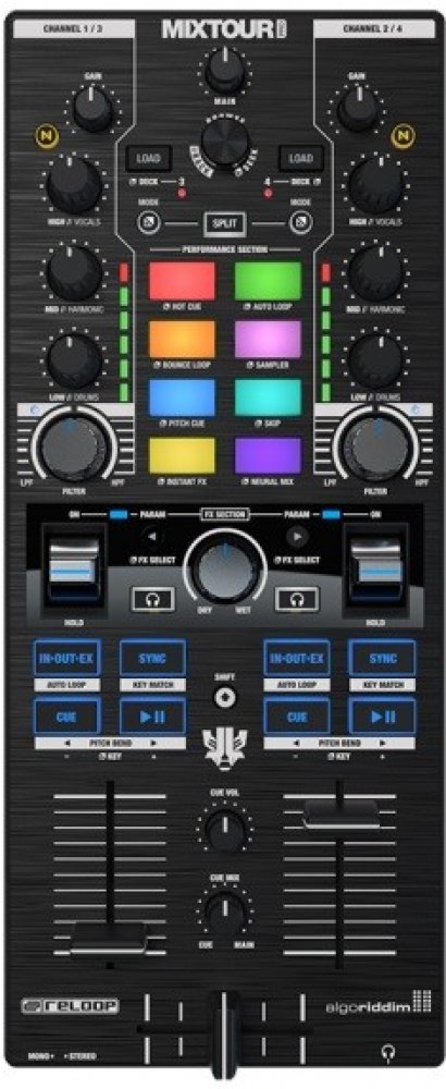 Reloop Mixtour Pro překračuje očekávání v těch nejmenších prostorách a poskytuje profesionální, ale přenosné řešení pro klubovou a festivalovou scénu. Velmi kompaktní DJ ovladač byl vyvinut v úzké spolupráci s legendárním DJem a producentem Laidback Lukem a je speciálně navržen pro použití s oceňovaným softwarem djay Pro od Algoriddim.Navzdory své malé velikosti je Mixtour Pro schopen podporovat mixování 4 decků se svými výkonnými a intuitivními ovládacími prvky. Díky osvětlené části s vyhrazenými barevnými LED diodami jsou uživatelé vždy informováni o tom, zda jsou právě aktivní decky 1 a 2 nebo decky 3 a 4. Hliníkový enkodér prohlížení a určená tlačítka načítání umožňují efektivní navigaci v knihovně a okamžité načítání skladeb.Jak už název napovídá, Reloop Mixtour Pro poskytuje také profesionální zvuk. Integrované 4x Out USB rozhraní s kvalitními D/A převodníky od Cirrus Logic umožňuje prvotřídní 24bitový zvuk s nízkou latencí. Přímé připojení je zajištěno přes pozlacené RCA výstupy a 3,5mm jack pro sluchátka.
