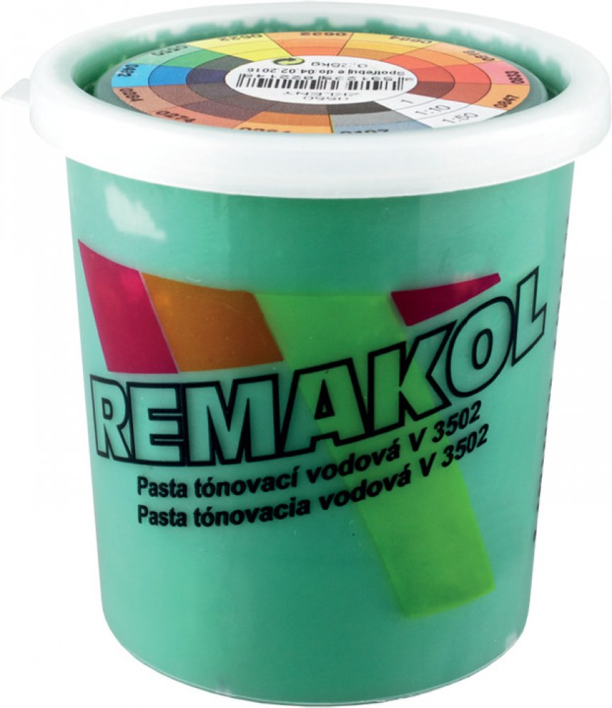 REMAKOL V 3502 je určen k tónování malířských barev jako je Remal , Primalex, Het, dále latexových barev pro použití v interiérech. lze je použít též k tónování disperzních barev na fasády.