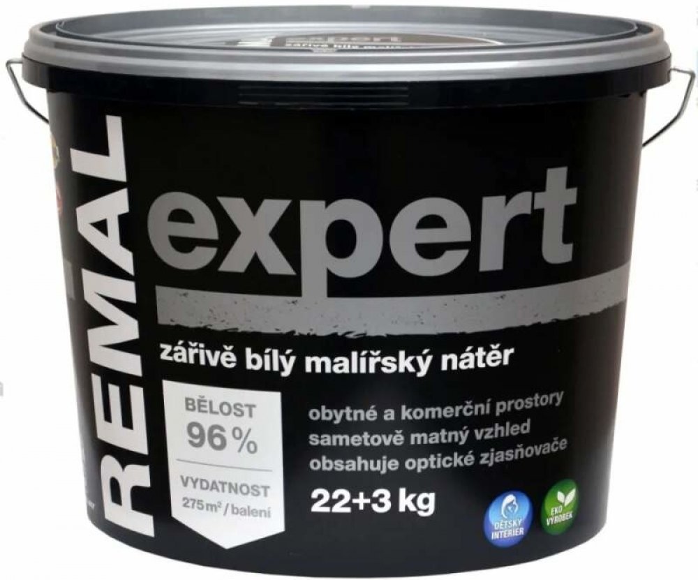 Podrobnosti o produktu 400880-3 22 plus 3 kg REMAL Expert je sametově matná a zářivě bílá malířská barva s extrémně vysokou bělostí 96 procent. Interiérová barva má excelentní krycí schopnost a je zároveň vysoce prodyšná, vhodná i na sanační omítky.