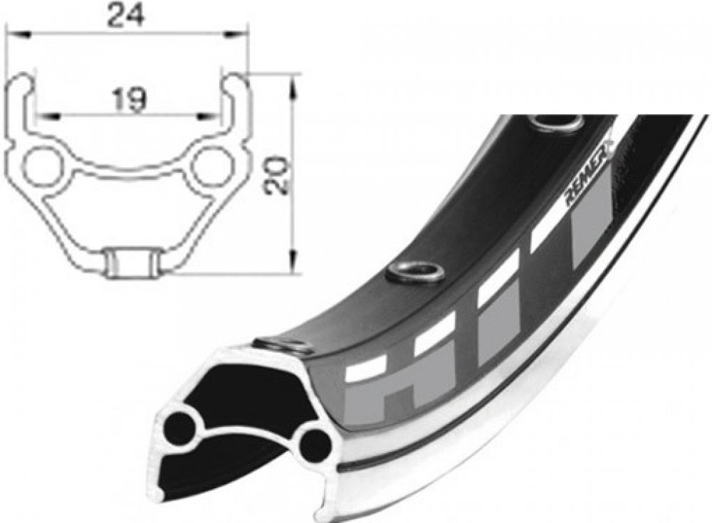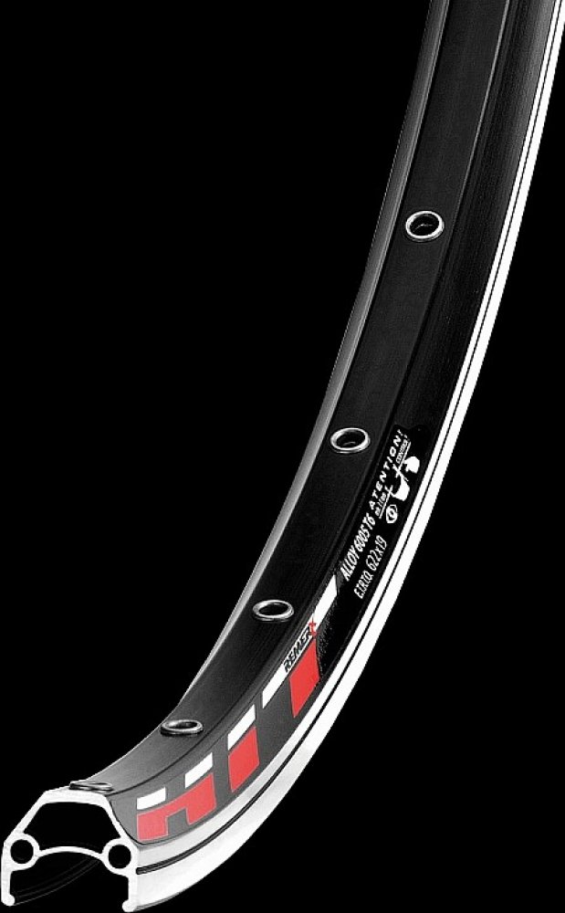 Dvoustěnný ráfek inovované konstrukce se hřbetem zesíleným nýtováním. Ráfek má nyní delší životnost, díky níž je vhodným společníkem pro cykloturistiku a městskou cyklistiku. Určen pro MTB. Pro V-brzdy.