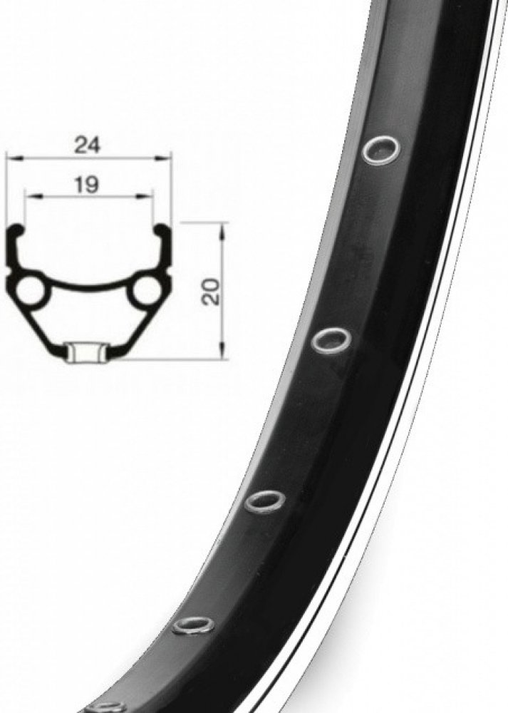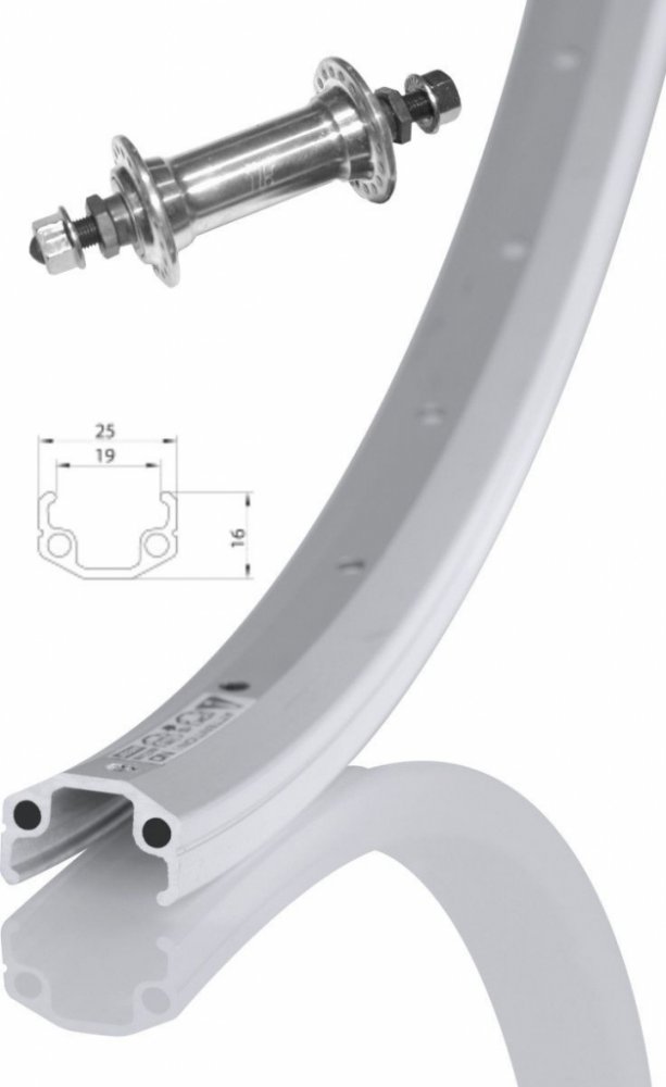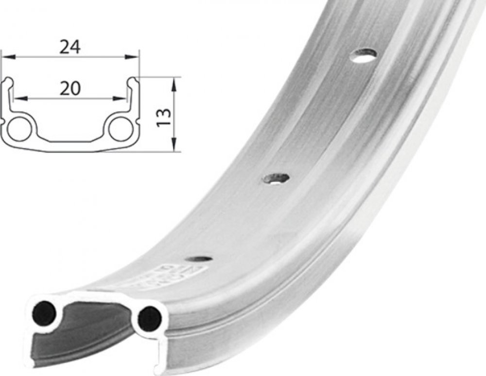 Osvědčená konstrukce ráfku pro běžné použití. Ráfek je vybaven bezpečnostním systémem SCR, který spočívá v zesílení základů háku pláště dodatečnou vrstvou, aby nedošlo k odlomení při opotřebované brzdné ploše. Po nadměrném opotřebení vrstvy nastává vyklonění bočnice a rozšíření ráfku, což způsobuje samovolné brzdění. Brzdná plocha je deformována a začne se na ní objevovat drážka. Dovolené opotřebování brzdné plochy je 0,35mm. Materiál: AW 6063 - speciální Al slitina se zlepšenými vlastnostmi, hmotnost: 438g, provedení: natural duralový povrch, 36 děr.