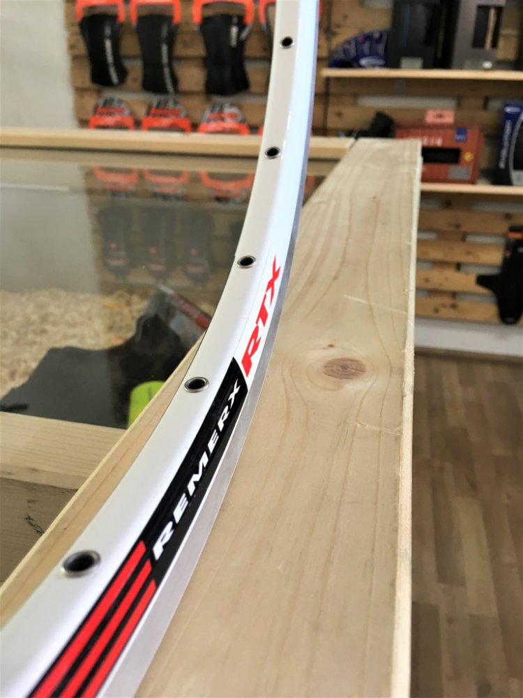 Galuskový závodní ráfek s pevným nýtovaným hřbetem zhotovený ze speciálního materiálu AW 6082. Plynule brzdí při obtížných podmínkách za deště a bláta.