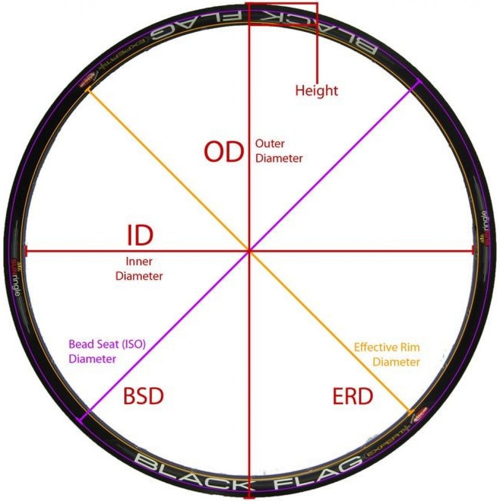 Výpočet pro rozměr 622:(hodnota ETRTO 622,3 mm (viz. na uvedeném obrázku označeno BSD). + 2x výška háku + 2x tloušťka stěny hřbetu – 2x výška ráfku (viz. na uvedeném obrázku označeno HEIGHT).