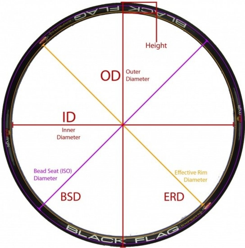 Výpočet pro rozměr 622:(hodnota ETRTO 622,3 mm (viz. na uvedeném obrázku označeno BSD). + 2x výška háku + 2x tloušťka stěny hřbetu – 2x výška ráfku (viz. na uvedeném obrázku označeno HEIGHT).