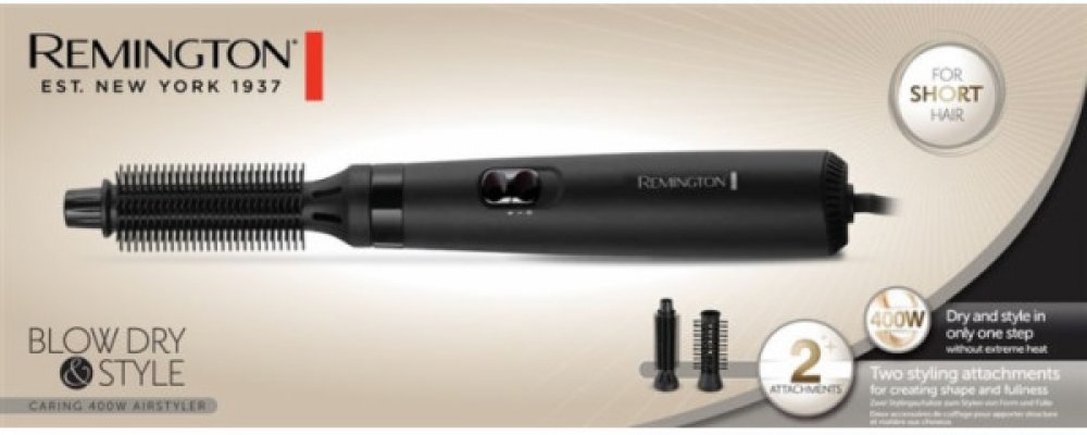 AS7100 - Vyživující 400W horkovzdušný kartáč pro fénování a styling Vyrobeno pro lásku a styling krátkých vlasů Lehký a flexibilní 400W horkovzdušný kartáč pro tvarování a styling krátkých vlasů. Horkovzdušný kartáč má 2 nastavení teploty/rychlosti a 2 různá příslušenství, 19mm kulatý kartáč, který vytváří menší lokny, a 25mm hlavici, která dodává objem u kořínků, ale dokáže vytvořit i volnější lokny a vlny. Pro oba kartáče: Vezměte smyčku z vlasů a omotejte konce vlasů kolem kartáče. Otočte přístroj tak, aby byly vlasy omotány kolem cívky kartáče, a upravte vlasy podle svých představ. (Délka 35 cm výška; 4 cm hloubka; 4 cm)Vlastnosti: - Vhodný pro rozčesávání vlasů, které jsou v rozčesávacím systému: - 2x příslušenství pro úpravu krátkých vlasů; - kartáč o průměru 19 mm - měkký kartáč 25 mm - 400W - 2 nastavení teploty/rychlosti - Otočná šňůra - Smyčka pro zavěšení * Registrace online do 28 dnů pro další rok Kartáč na krátké vlasy Remington Blow Dry & Style kombinuje účinnost vysoušeče s přesností kartáče. S výkonem 400 W zajišťuje rychlé vysoušení a úpravu krátkých vlasů. Integrovaný efekt horkého vysoušeče poskytuje dodatečné teplo pro profesionální úpravu. Ergonomický tvar a štětiny se zaoblenými konci umožňují pohodlný a k vlasům šetrný styling. Ideální pro každého, kdo chce mít stylový vzhled v co nejkratším čase. Pro dosažení optimálních výsledků kartáč pravidelně čistěte. Kartáč používejte pouze na suché vlasy a udržujte jej mimo dosah vody. Vysušte a upravte si vlasy v jednom snadném kroku pomocí řady vzduchových kartáčů Blow Dry and Style. Nikdy nebylo snazší zvednout kořínky, vytvarovat konečky nebo vytvořit hladký povrch.Vzduchový kartáč AS7100 upravuje tvar a plnost krátkých vlasů pomocí dvou kulatých kartáčových nástavců (19 mm a 25 mm) a dvou kombinovaných nastavení tepla a ventilátoru.Vyměnitelné nástavce a nastavitelné nastavení tepla a rychlosti vám pomohou vytvořit váš osobní styl. .