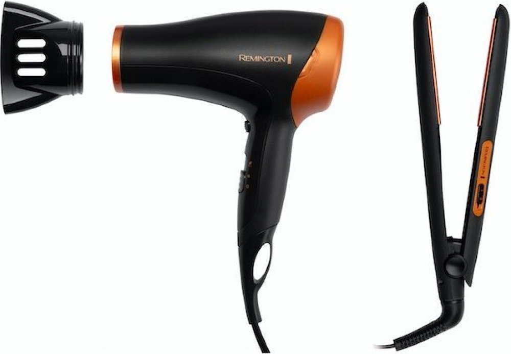 Praktická dárková sada Remington D3012GP nabízí základní produkty z péče o vlasy, které jsou nezbytné pro každou příležitost. Sada žehličky na vlasy a fénu zajisté potěší každou ženu. Dárková sada obsahuje vysoušeč vlasů Remington D3010 a žehličku na vlasy Remington S1450. Oba výrobky jsou v moderním provedení s bronzovými prvky. Fén disponuje keramicko-iontovou mřížkou, která rovnoměrně rozptyluj...