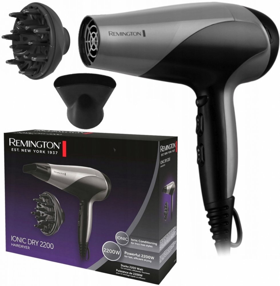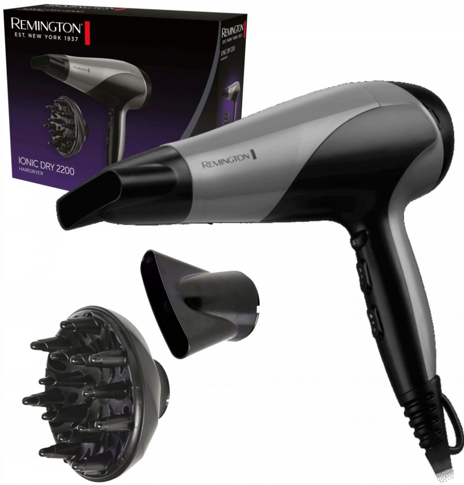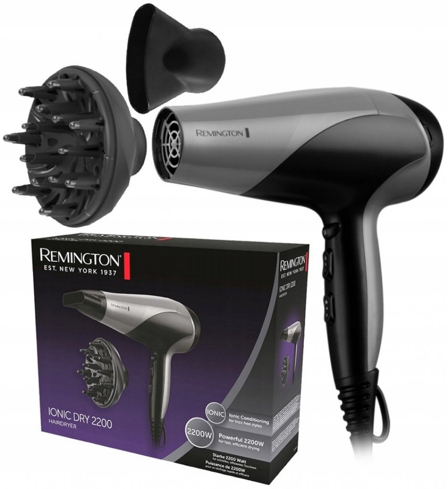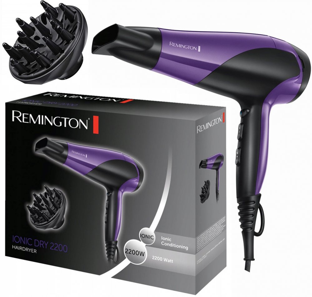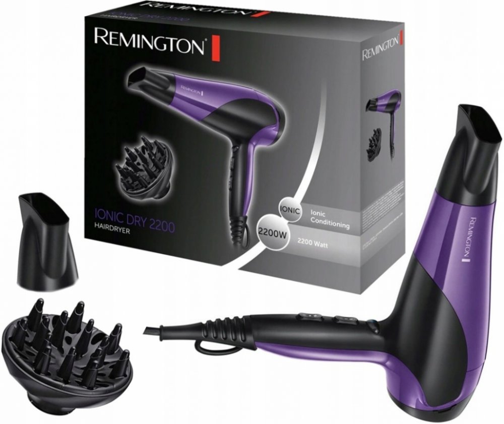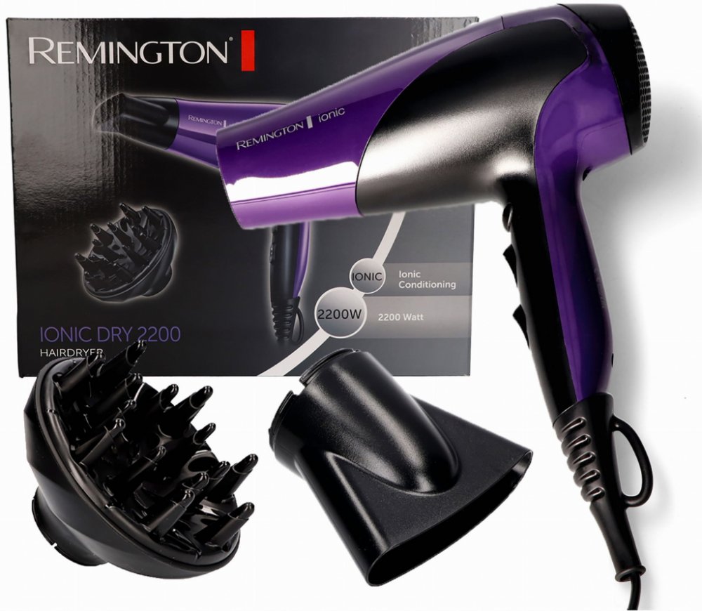 Výkonný fén na vlasy Remington D3190 Ionic Dry Vám zajistí perfektní účes po celý den. Díky ionizaci zabraňuje krepatění a zanechává vlasy hladké. Pomocí difuzéru si můžete vytvořit větší objem Vašich vlasů. Součástí také koncentrátor pro rovnoměrné rozložení tepla.